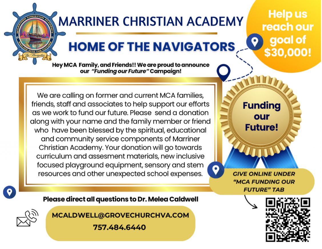 Thank you so much for your heartfelt love and support for the students and staff of Marriner Christian Academy. All contributions are a blessing and are used to assist with meeting the needs of this educational ministry.